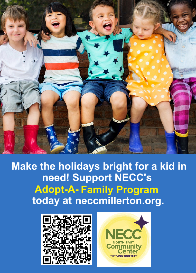 The beloved Adopt-A-Family Program, now administered by NECC, helps to ensure that local families have what they need during the upcoming holiday season. With rising food prices and housing costs in our area, many families face a challenging winter. NECC depends on the support of individual donors to make this invaluable program a great success.